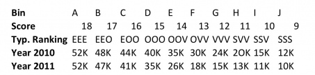 Unstable: Here is yet another indication of how unstable the system now is. Senior mathematicians at Toronto came down from 42K to 18K because they were in the OVV bin. Had they been in the neighboring EVV bin, they would have kept their old grants. In other words, only one vote by one person on one criterium have changed an E (Exceptional) into an O (Outstanding) and cost them (42-18) x 5=120K. That’s a travesty of an evaluation.